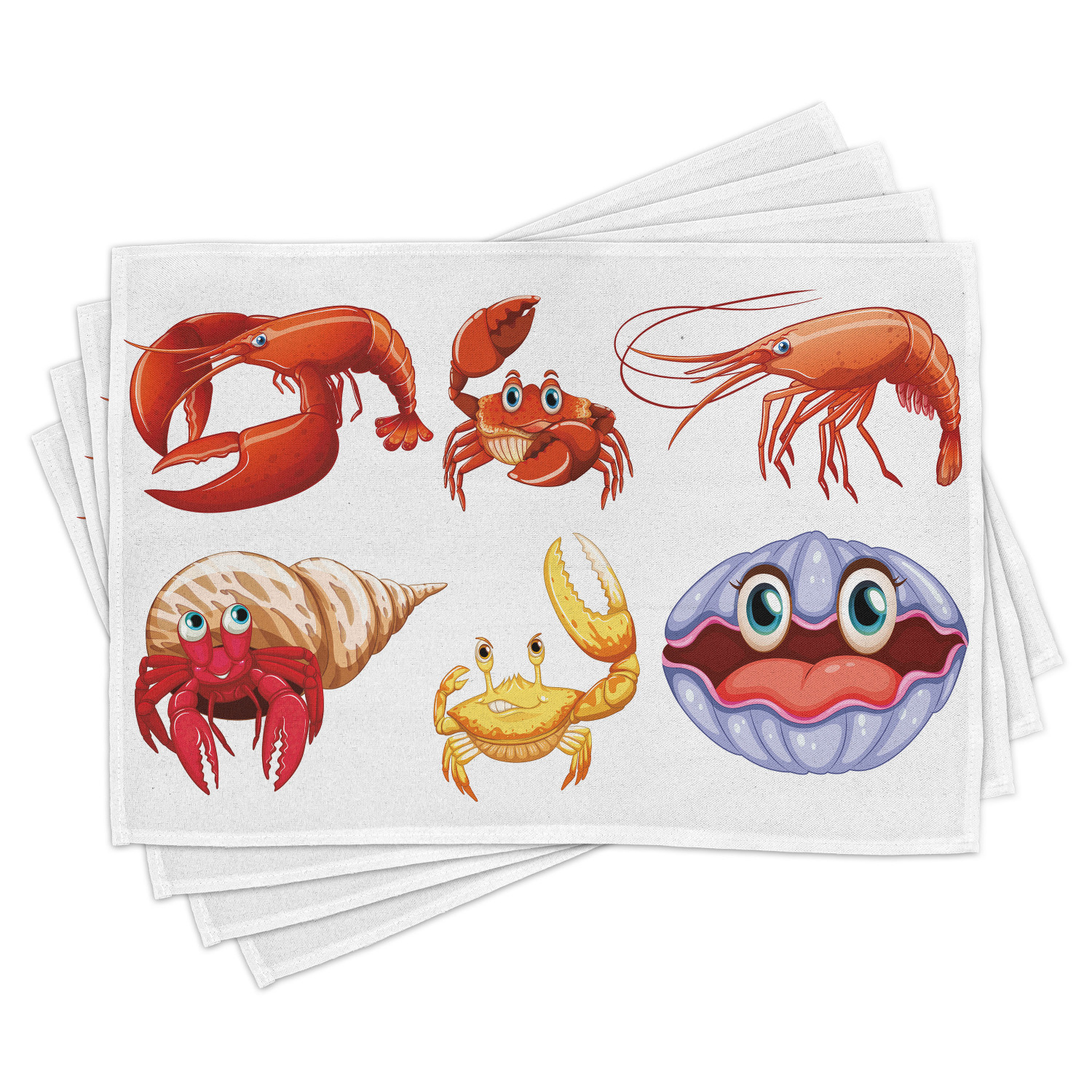 Crabs Placemats Set Of 4 Illustration Of Sea Animals Like Crab Hermit Crab Lobster Shells Shrimp Print Washable Fabric Place Mats For Dining Room Kitchen Table Decor Orange Yellow By Ambesonne Walmart Com